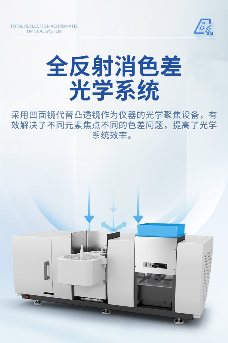 采用凹面鏡代替凸透鏡作為儀器的光學(xué)聚焦設(shè)備,有效解決了不同元素焦點(diǎn)不同的色差問(wèn)題,提高了光學(xué)系統(tǒng)效率。