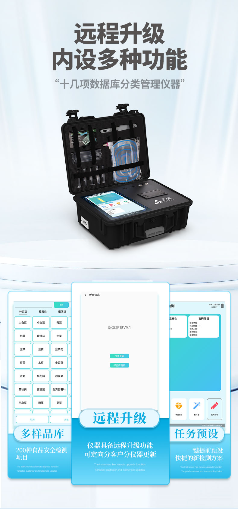 13、儀器具備遠(yuǎn)程升級(jí)功能,可定向分客戶分儀器更新,開機(jī)后自動(dòng)更新,并可持續(xù)性免費(fèi)更新系統(tǒng)版本,無需像傳統(tǒng)產(chǎn)品返廠更新,節(jié)省時(shí)間及人力成本并避免了物流運(yùn)輸返廠升級(jí)導(dǎo)致設(shè)備損壞的潛在風(fēng)險(xiǎn)。